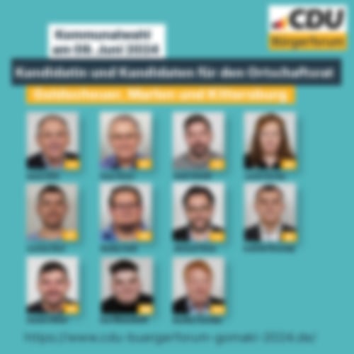 Hier präsentieren wir Ihnen die Kandidatin und Kandidaten unserer Liste CDU/Bürgerforum. Wenn Sie mit uns Kontakt aufnehmen wollen können Sie das über diesen Link tun Kontakt